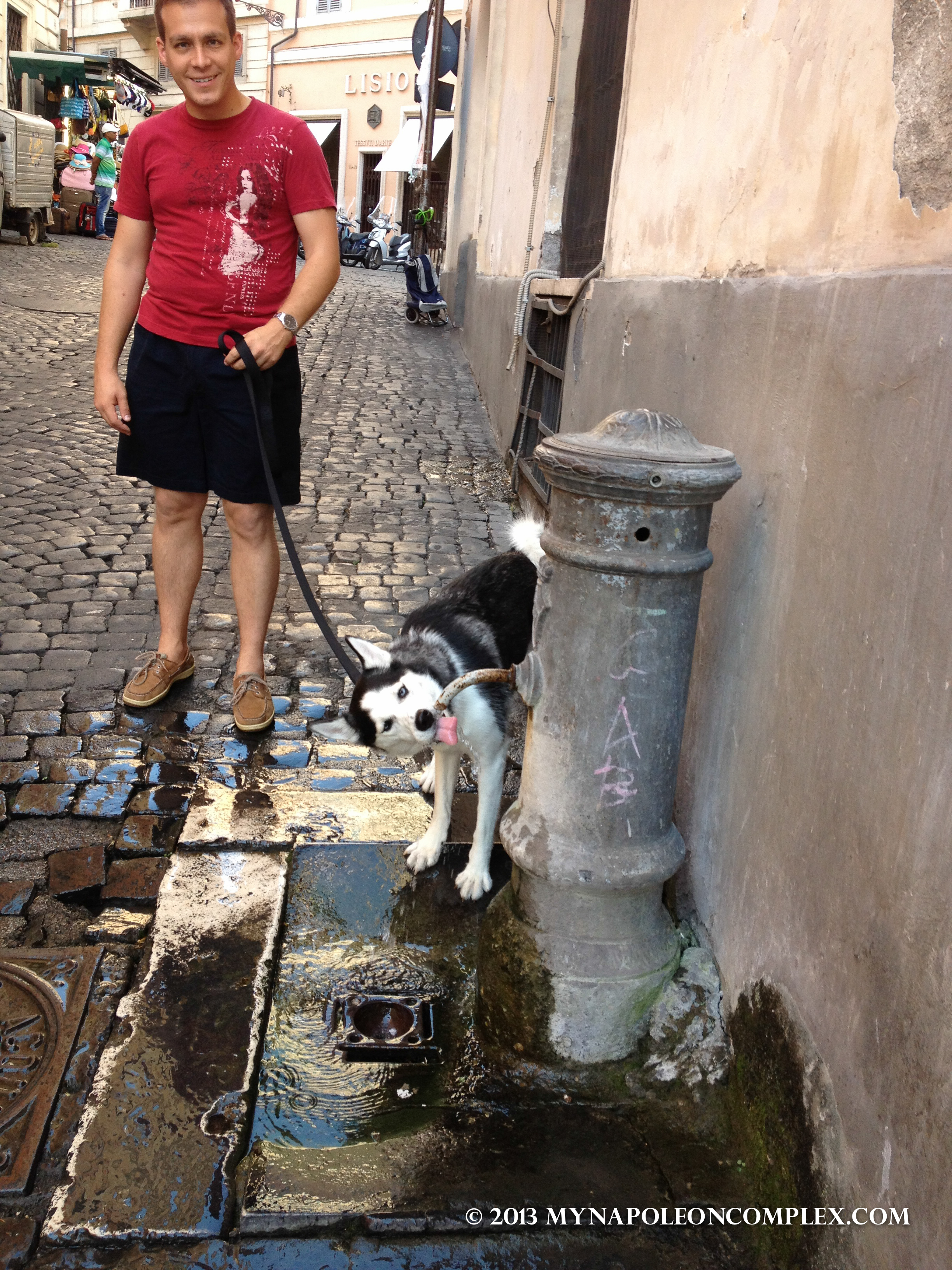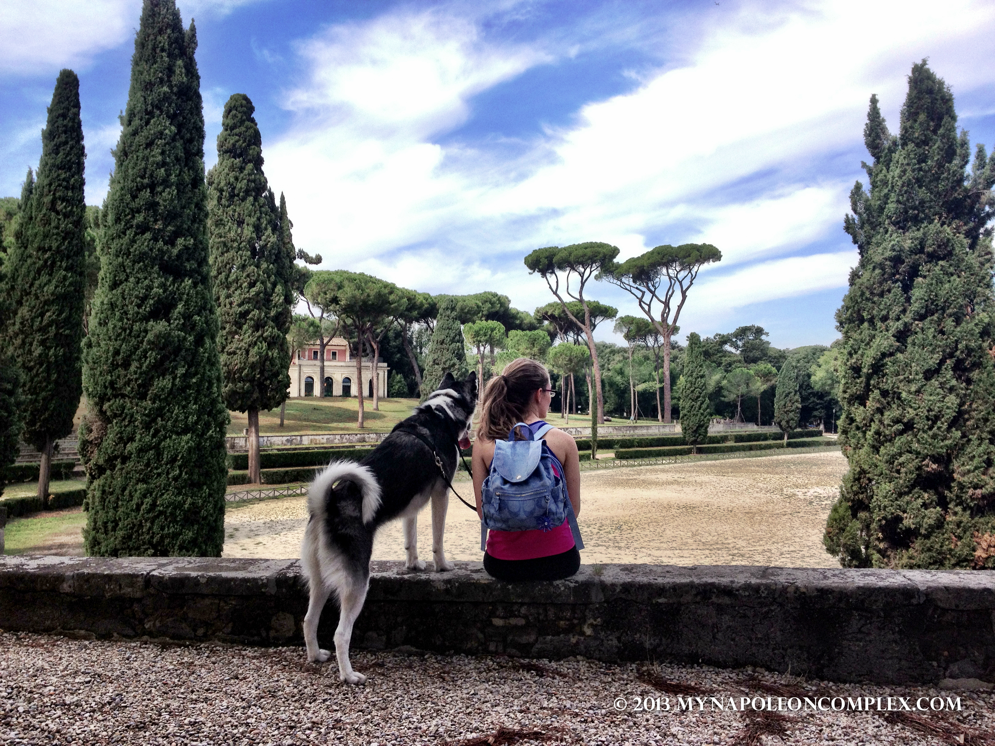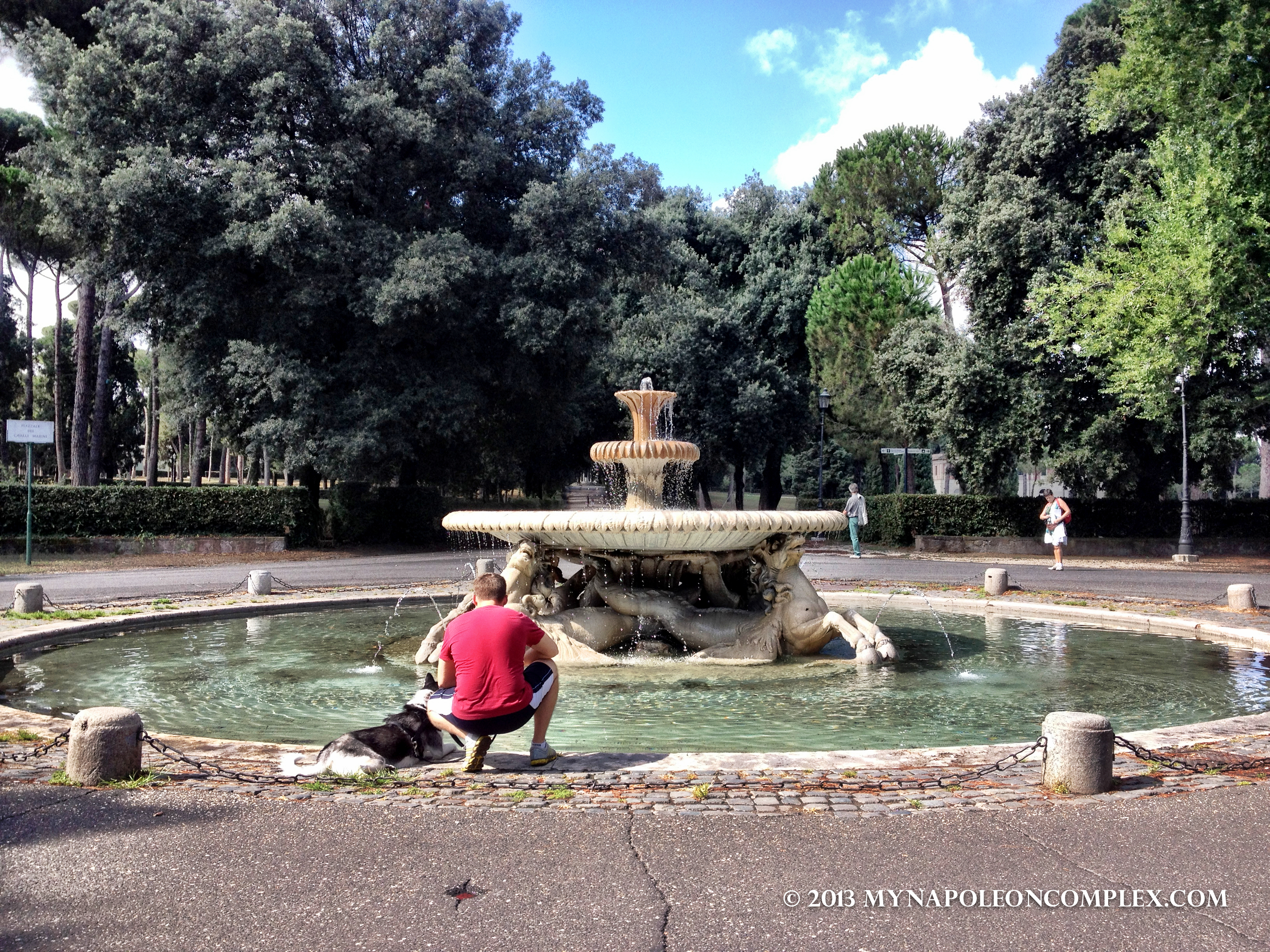 Because our hotel is in Piazza Barberini, we’ve also walked around the Villa Borghese gardens and park like 4 times since we’ve been here. Villa Borghese is sort of like Rome’s Central Park. It’s beautiful and a great place to take pets. I realize now that Arya is probably going to be the one to enjoy Italy the most. She gets to run around free in a huge area with no fences, she can go into most shops with us, and she can even ride the public transportation system (but we haven’t taken that for a spin yet). Oh, and her favorite part (and mine too) has been the Roman water fountains spread throughout the city. There are over 2,000 in total, providing fresh, delicious, ice-cold water all day long fo’ free.99!