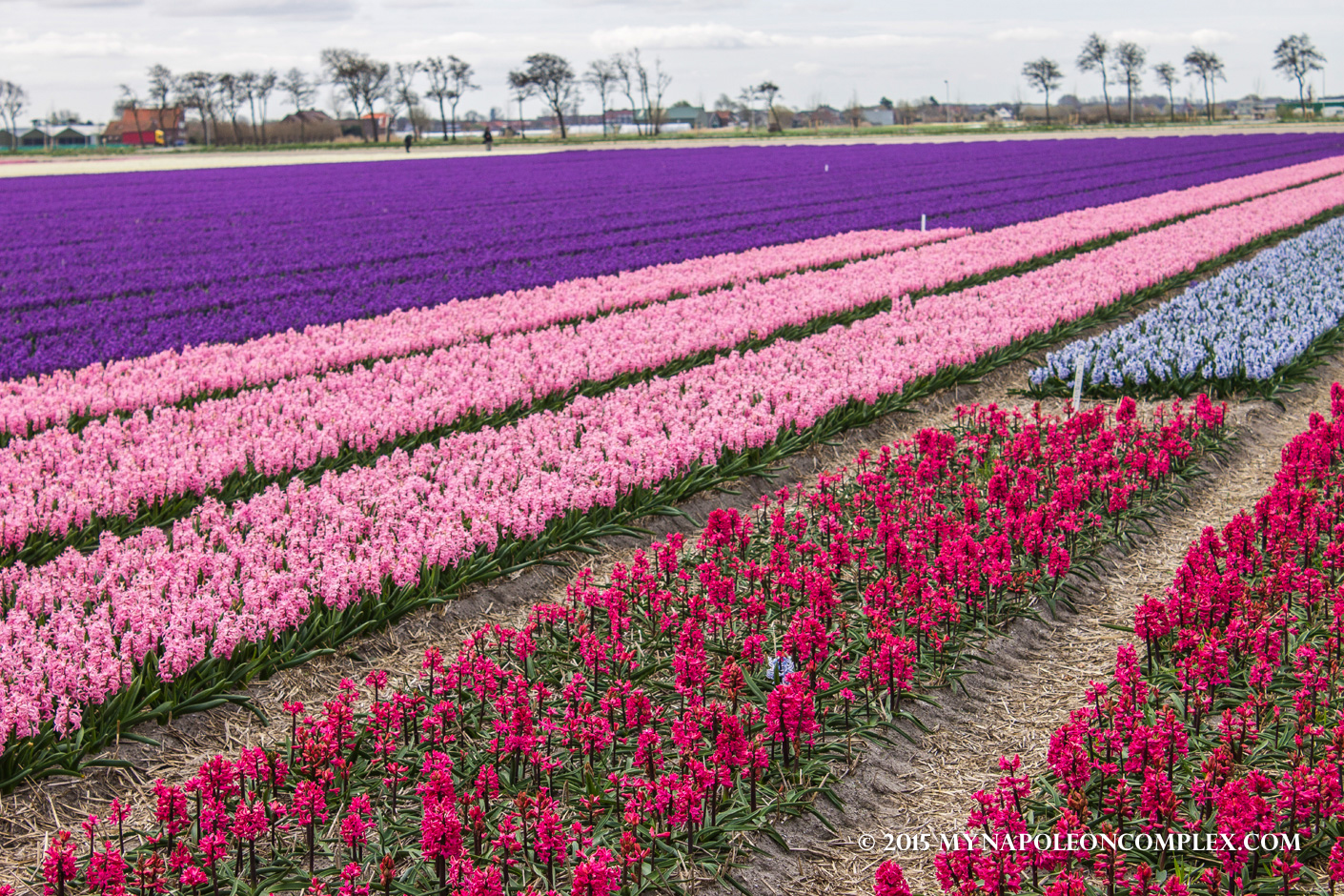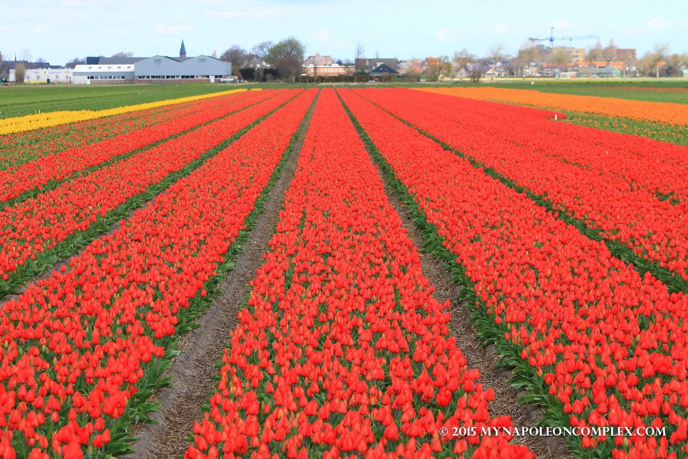 To get to Keukenhof (located in Lisse) from Amsterdam, you have several different options: you can take a train from Amsterdam’s main train station (I believe it’s 45 minutes), you can also rent a bike and bike to Keukenhof (not from Amsterdam, but probably starting from Haarlem, depending on how much you want to bike). This would probably be a good way to partake in some cycling along with tulip fields. We decided to rent a car from Amsterdam. The drive is really 45 minutes to an hour, and we took the famous Bloemen Route (Flower Route) to try to catch some of the tulip fields surrounding Keukenhof. As I mentioned above, we were a little bit early in the season, so while we did see the fields, most of them had not yet bloomed to form the famous stripes of tulips.