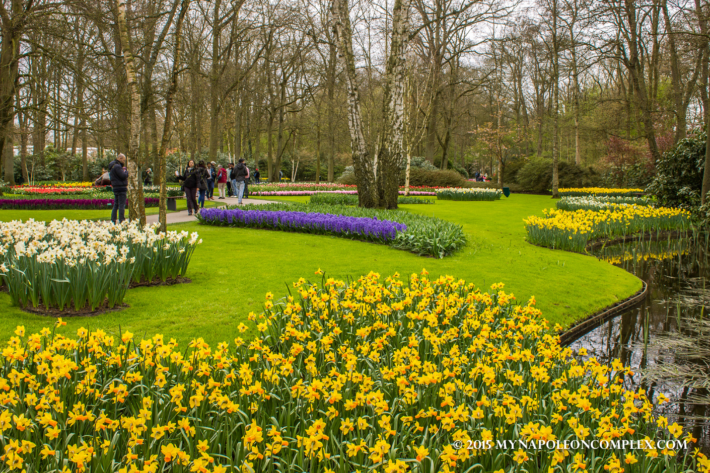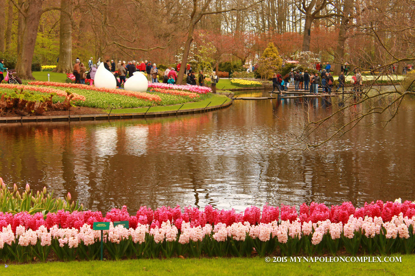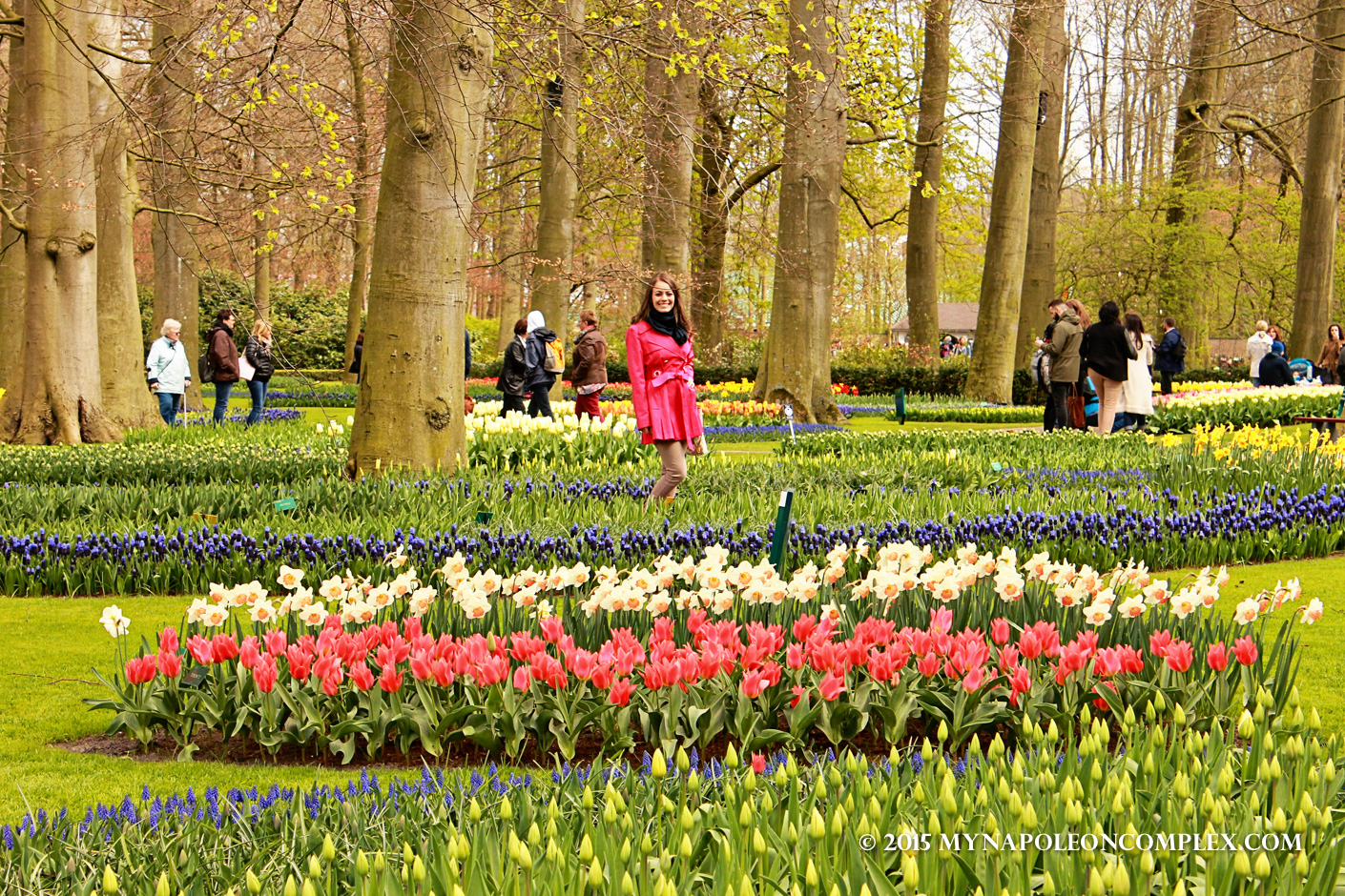 I warn you, there are no words to describe the beauty of this garden, so I will rely on a lot of colorful pictures of pretty flowers to do the work for me. Keukenhof is one of the largest flower gardens in the world, with approximately 7 million flower bulbs planted each year, according to their website. It is only open for eight weeks a year, from April to May, the season for tulips. Because of the weather, it is very difficult to predict when the perfect peak time to go will be. For example, most websites say that mid-April is the best time to go because the tulips are in bloom and the trees have also started to flower. But even though we went exactly in mid-April, it was still pretty chilly and a bunch of tulips had yet to flower. But whether you go too early or maybe a little too late, if you want to see tulips, I guarantee you, you will see so many that you’re head will spin.
